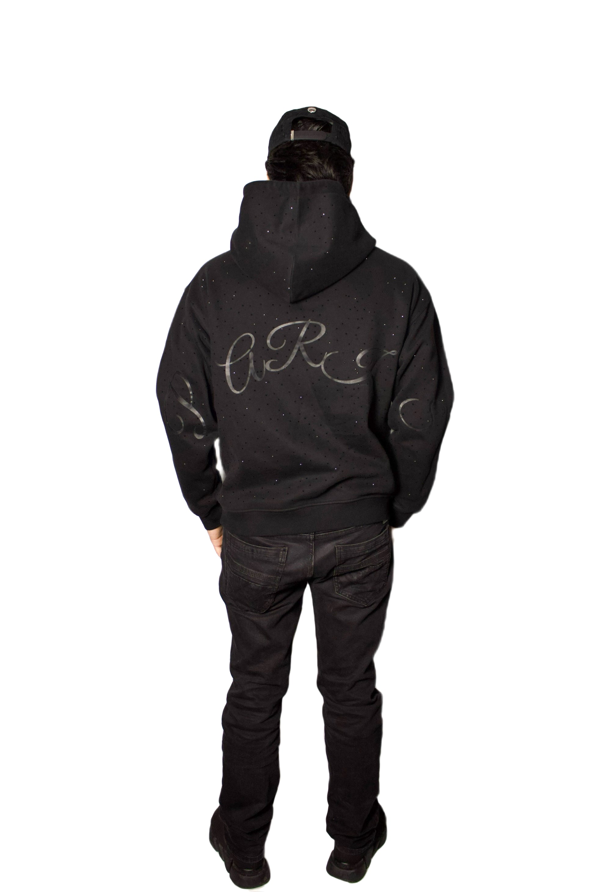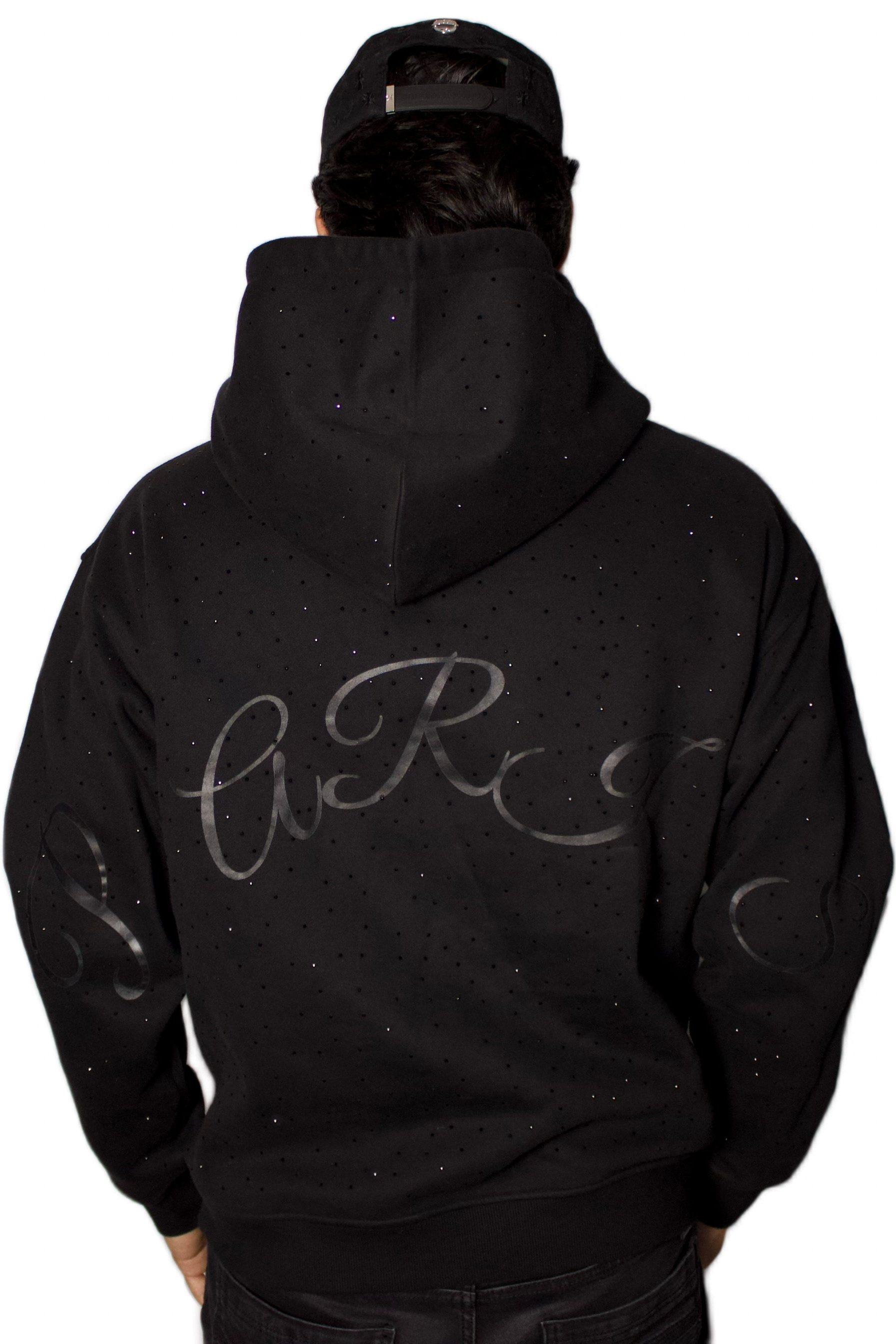 A study in monochrome elegance, the Edition Noire Hoodie is crafted in deep black and adorned with tonal rhinestone detailing throughout. Refined yet expressive, it embodies a quiet sophistication rooted in modern Parisian design.